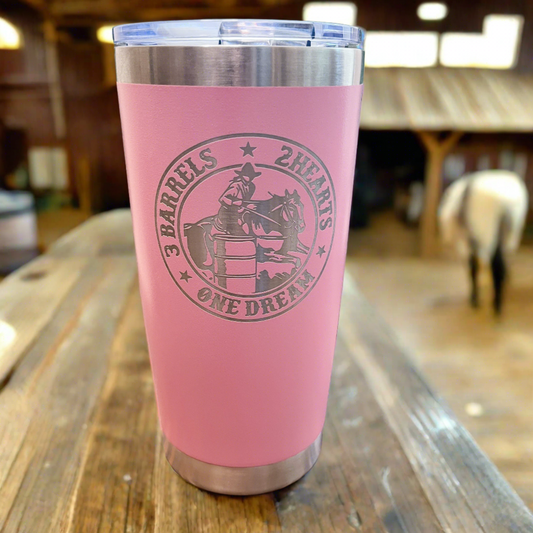 Barrel Racing Tumbler - 3 Barrels, 2 Hearts, 1 Dream - 20oz Tumbler